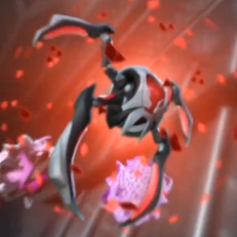 Blast Link has a very similar appearance to Miles Dread's design, having a mechanical and angular appearance. He has a small spherical head where his Ultralink core is located, and various triangular/polygonal plates covering his body. He has red accents on his shoulders, cannons, torso and legs. Blast also has a cannon on his right shoulder, and two blasters for hands, with the left being larger than the right.