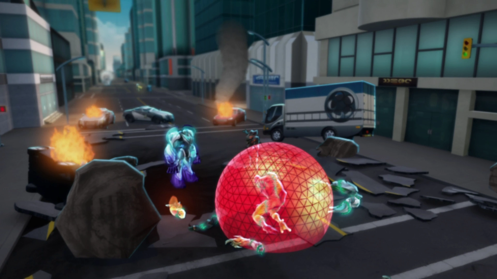 In the following days, Morphos defeats the Elementors and Extroyer, earning widespread fame and public support from the citizens of Copper Canyon. During a public event, the mayor of the city announces his resignation and declares that Morphos is taking his place. A news reporter, commenting on the mayor's decision to shut down THI, interviews Molly McGrath, who states that the company posed no threat to the city. Watching the broadcast from home, Jim and Max support her statement. A worried Maxwell goes outside of their apartment, with Steel following him shortly after. McGrath comments that Morphos' adaptive nature makes him one of their deadliest, as well one of the most cunning villains. Jim approaches the two, assuring that they still possess untapped powers and Turbo Modes.