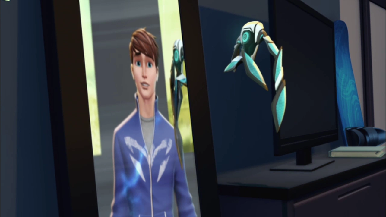 From inside of Max's backpack, Steel observed McGrath's soccer match. After one of the players of the opposing team scored a goal, Max headed toward his backpack to get some water. Steel mocks the player, whose nickname "la fiera", was being shouted by the crowd. Suddenly, the Ultralink picks up an emergency signal from N-Tek. Curious, McGrath asks what kind of emergency it was when a piece of the Daedelus platform falls into the soccer field.