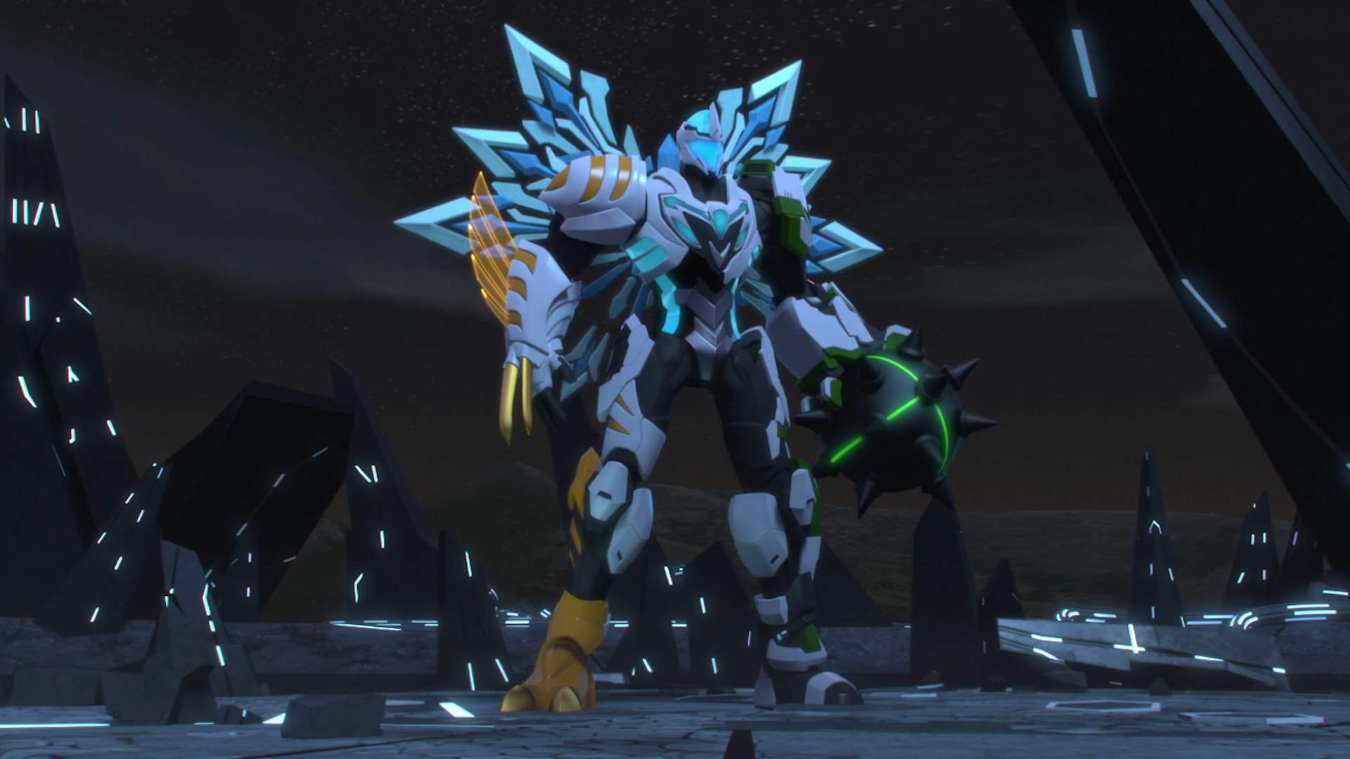 Turbo Prime Mode | Max Steel's twenty-first transformation. Max is equipped with six blades on his back, which can grant him the power of flight and be fired off as projectiles. He uses this mode with his Connect-Tek Sword. | Team Turbo |