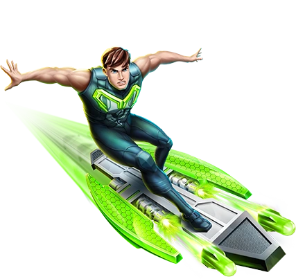 Turbo Wave Rider Mode | Max Steel's twenty-seventh transformation, and his third technological mode. Max is equipped with a hover-board that allows him to battle enemies on the sea, land or air. It can expand its sides to reveal projectile launchers. | Turbo-Warriors |