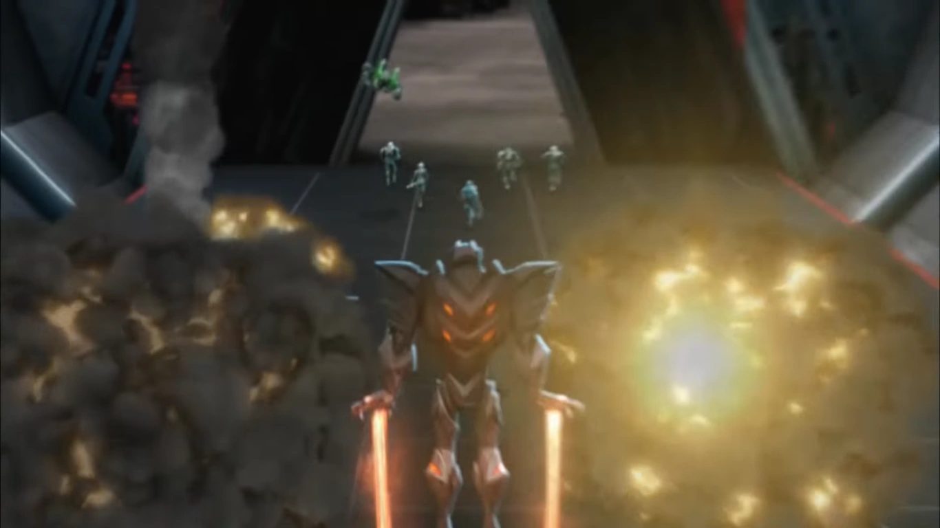 N-Tek’s forces fight against the remains of Dread’s army while three Makino Ships infiltrate Earth’s atmosphere, which was Miles’ plan all along. The heroes are forced to retreat and head back to the mountain base. There, Steel is confused and asks Max if Ven-Ghan had switched sides after capturing the evil Ultralink from Dread, though he doesn’t knows. Meanwhile at the Makino Destroyer, Chomp questions why they aren’t attacking, of which Dread tells them that they had lost the battle and claims that Makino’s minions didn’t knew anything about their enemies, angering them. Makino tells them to be quiet and proceeds with his plans of building an strong army to take down N-Tek and then annihilate Earth. As Makino speaks, many Ultralinks are bonding with objects on their sight, creating monstrous creatures.